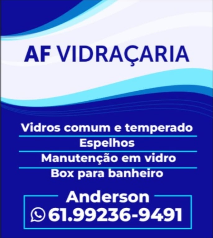 A AF Vidraçaria é especializada em vidros comuns e temperados, espelhos sob medida, manutenção em vidro e box para banheiro, fechamento de varandas e sacadas. Trabalhamos com qualidade, agilidade e acabamento impecável para deixar seu ambiente mais bonito e seguro. Atendemos residências, comércios e construtoras com soluções personalizadas em vidro. Fale com o Anderson e solicite seu orçamento pelo WhatsApp (61) 99236-9491. Profissionalismo e confiança em cada projeto!